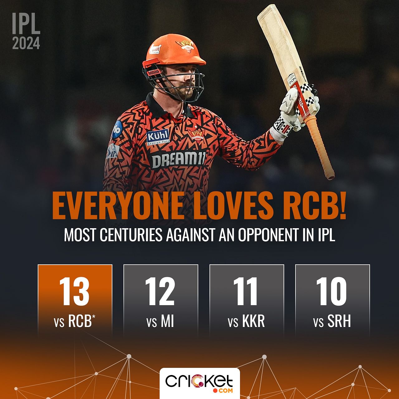 Travis Head also notched his first IPL ton. In the process, RCB conceded their 13th century which is the most against a team in IPL. In the process of scoring his highest T20 score, Head also had a spectacular 108-run partnership for the opening wicket with Abhishek Sharma which happens to have the highest-ever strike rate for a 100+ run partnership in IPL.