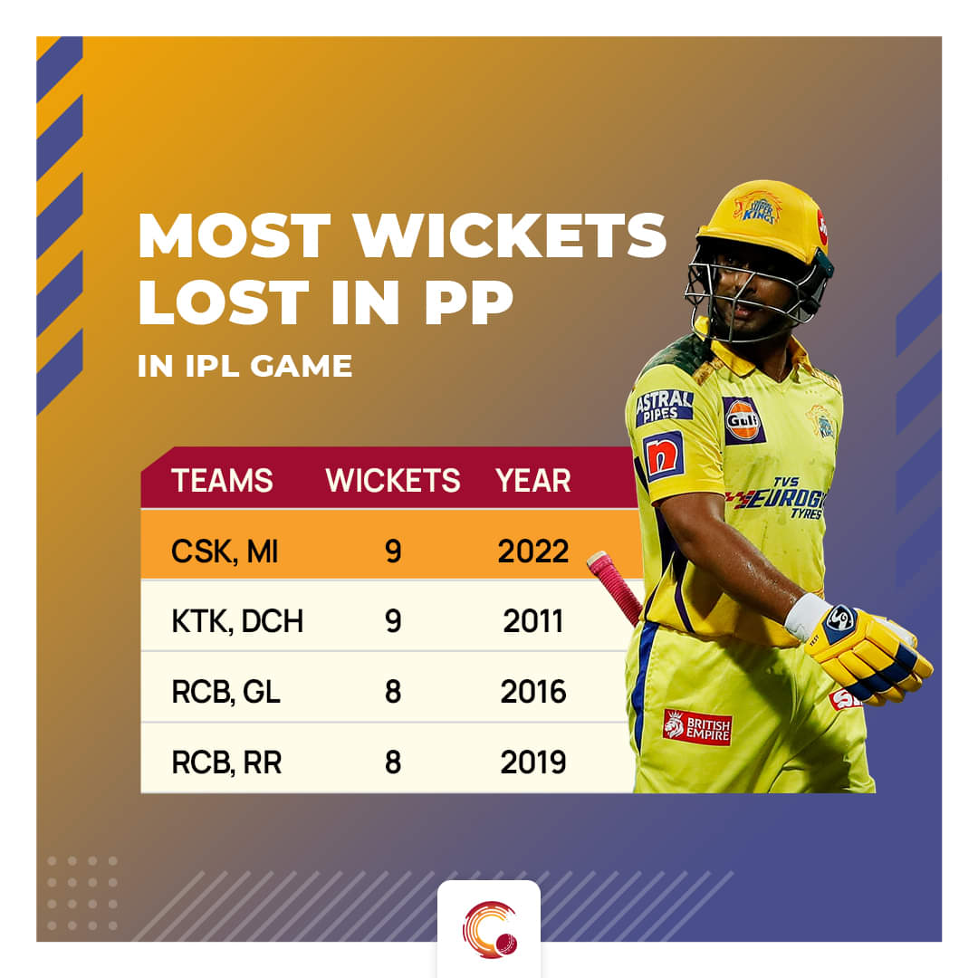 It seldom happens that both the teams have struggled in the powerplay in a single match. However, such has been the form of the top order for both the sides that nine wickets tumbled across both the innings in the powerplay, which is the joint-most in an IPL match.