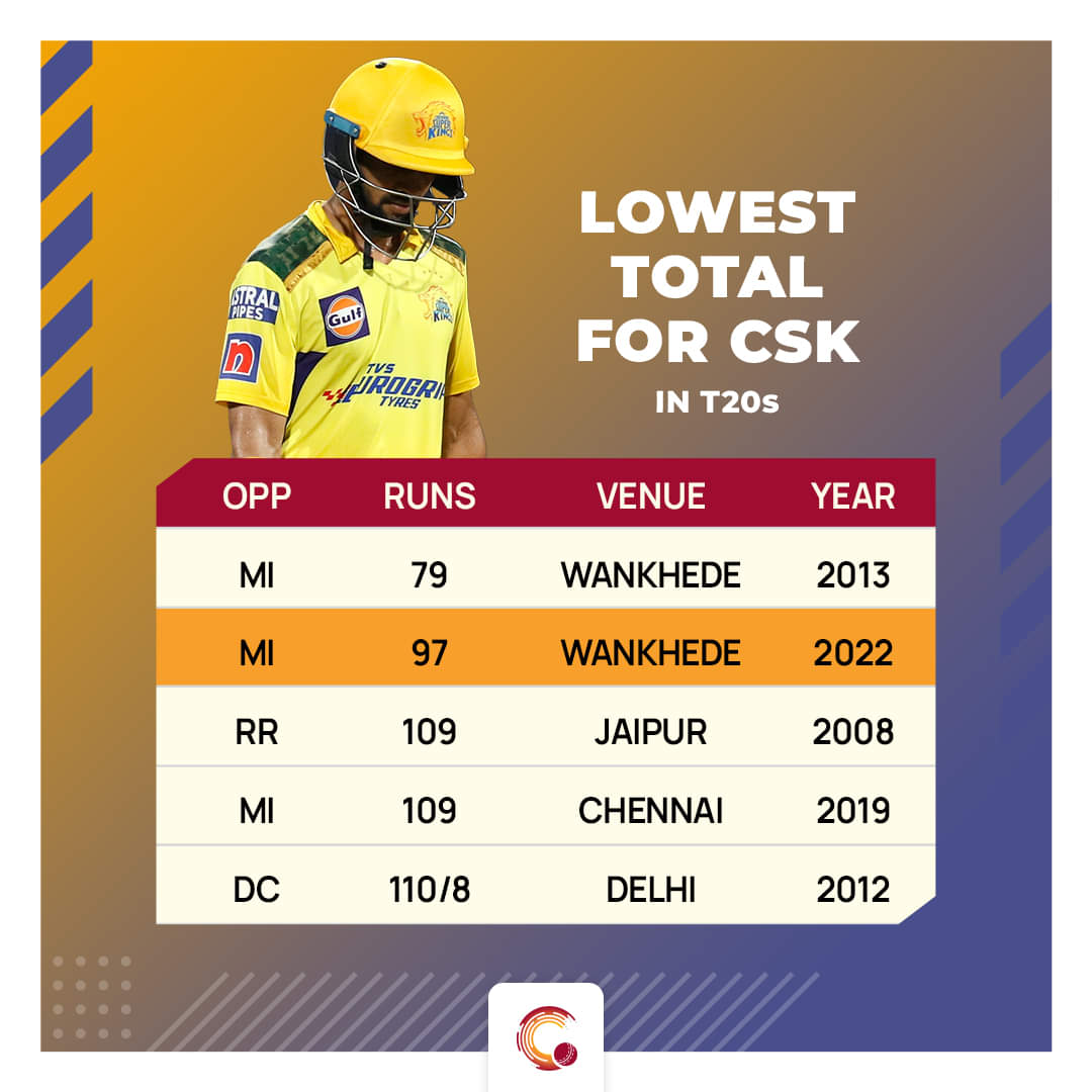 Their poor outing with the bat resulted in Chennai succumbing to their second-lowest total in the history of the tournament. In 2013, against the same opposition and at the same venue, the Super Kings were dismantled for 79, which is their lowest total.