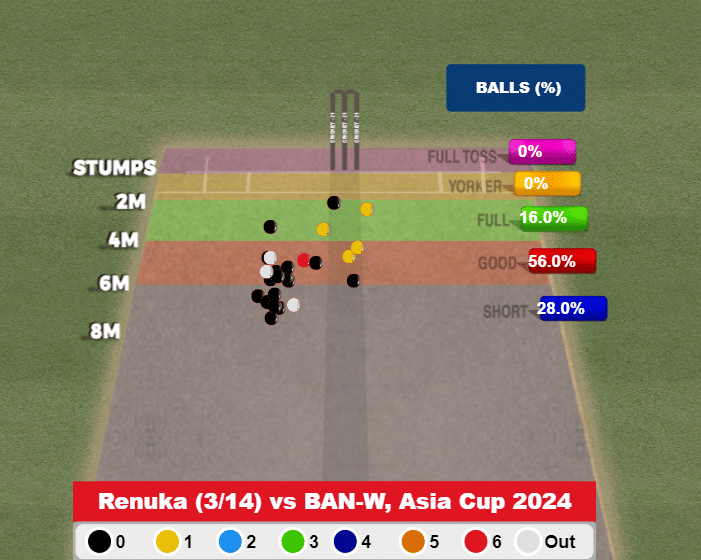 Her pitch map against Bangladesh from the first semifinal of the Asia Cup is a great illustration of that. In fact, it was in this crucial encounter that once again she picked up multiple wickets in the powerplay, and the opposition couldn’t come back after those early blows.