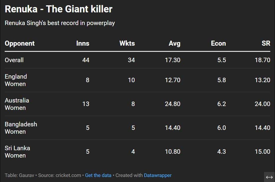Amongst these 34 wickets, 18 have come against Australia and England! So it’s not just that Renuka is great in the powerplays. She is great against the best teams in the world as well, and that’s why a dry first few months of the year were so shocking for her and the Indian fans alike.