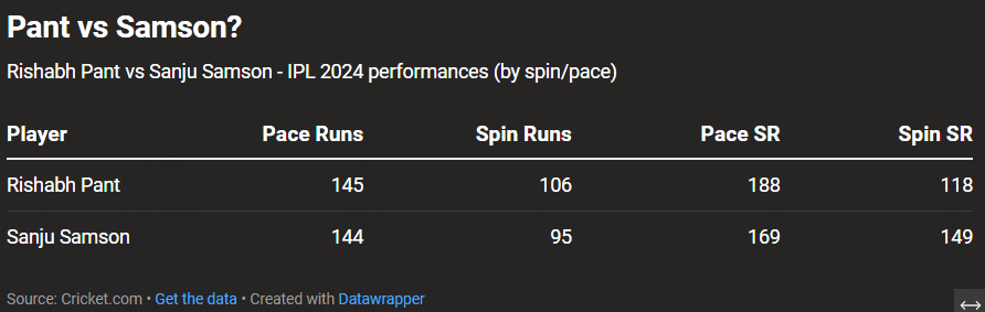In Rishabh Pant, there is a left-handed batter who has his strength against pace. Meanwhile, Sanju Samson is a right-handed batter who has shown great skills against both pace and spin. But only one of the two can feature in India’s setup.
