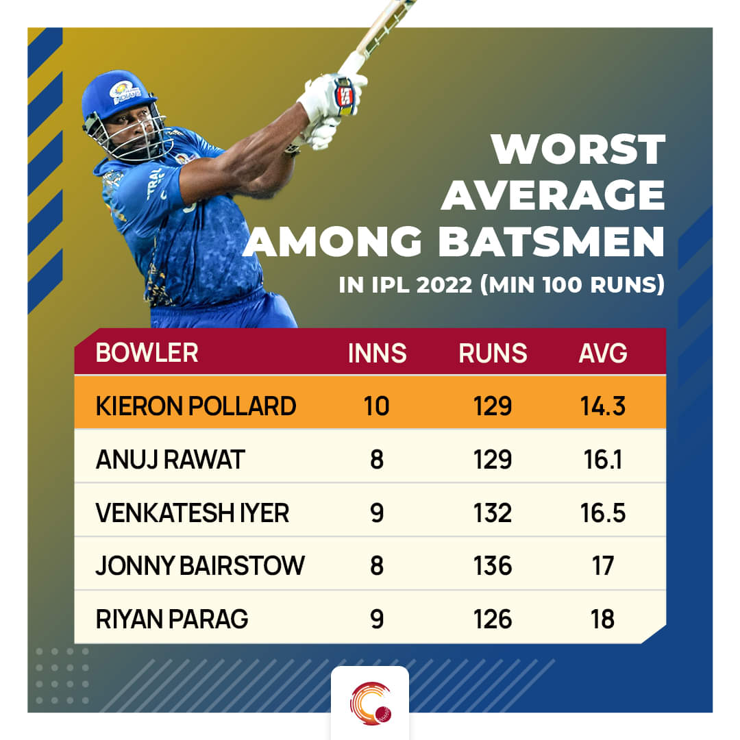 So, with the Mumbaikar ruled out, there is a strong chance of the franchise opting to play Brevis. This year, barring three games, Pollard’s strike rate has been under the 100 mark. In the last four of his five encounters, the former Windies skipper has struck at a rate of 93.75, 28.57, 71.43, and 95 despite facing a minimum of nine balls in every encounter.