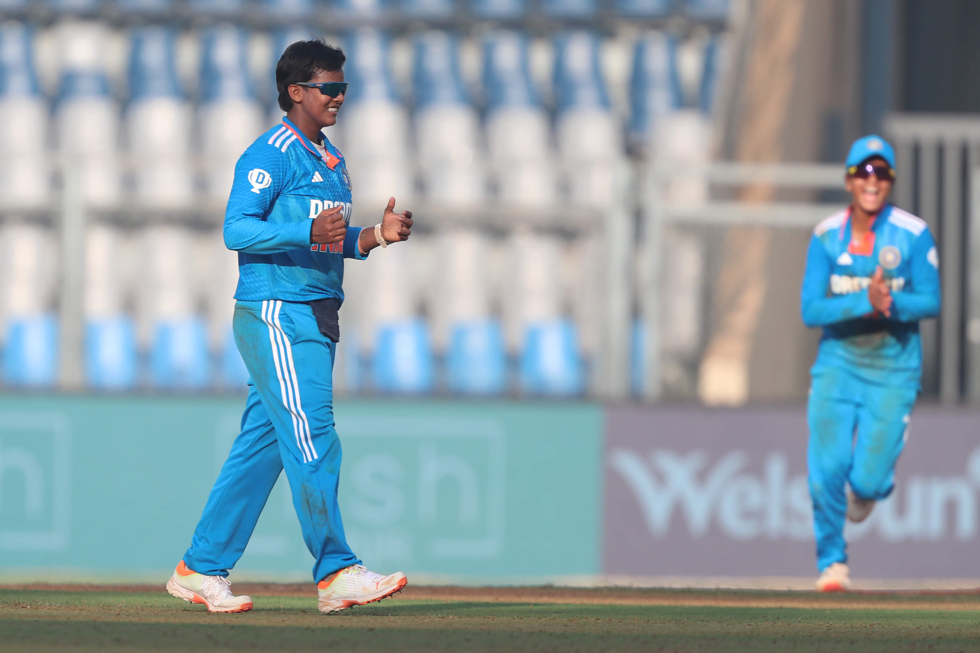 Australia were 117/1 at one stage, with both Litchfield and Perry having registered their fifties, when Deepti got her first scalp. The offie had Perry caught at short mid-wicket before pinning Mooney right in front of the stumps. Meanwhile, McGrath (24 off 32) was undone by sharp turning-in delivery. Deepti then got rid of Sutherland and Wareham in her final over and became the first player from Asia to take a five-fer against Australia in Women’s ODIs.