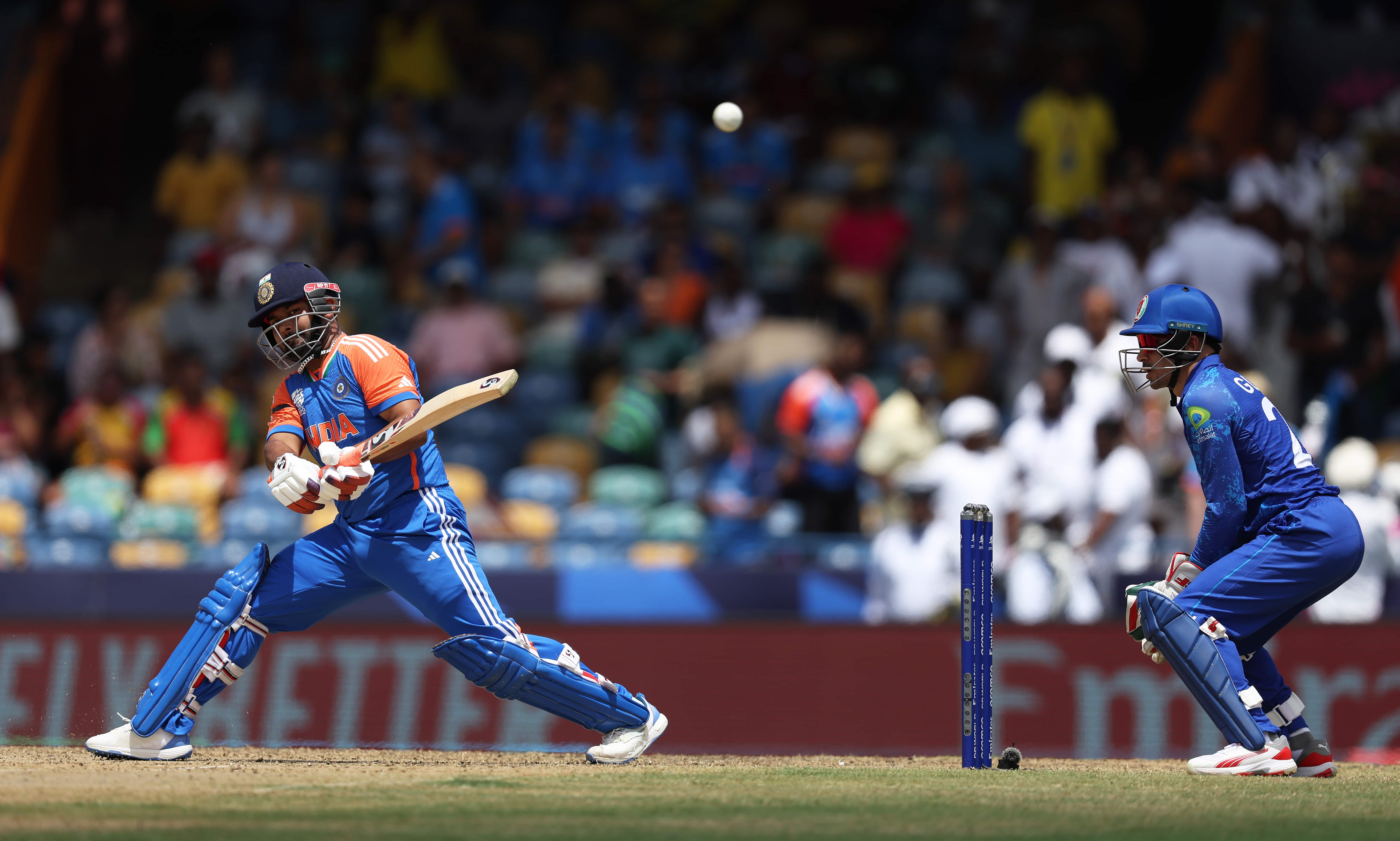His impact was most visible when India faced Afghanistan in their first Super Eight contest at Barbados. He came in to bat when India were 11/1 after 17 deliveries in the game. In the last over of the powerplay, he scored three consecutive fours against Mohammad Nabi’s off-spin — his unfavourable matchup!