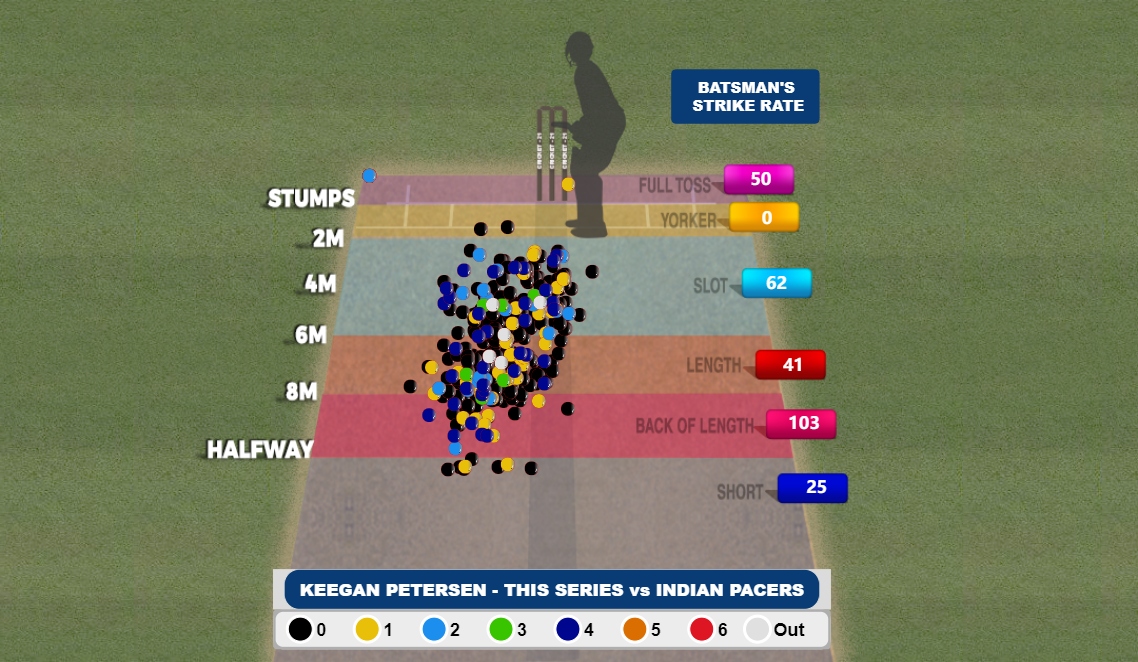 In the ongoing series, he has already scored 103 runs on back-of-length deliveries while scoring 62 on balls landing on the slot. In simpler terms, he was going for runs everywhere he was seeing an opportunity and the reverse lap to Ravichandran Ashwin on the front foot was a clear testimony to the same. While one can also argue that he was lucky, with the throw of dice coming his way in terms of edges not flying, that was a clear example of how swiftly has he been able to mitigate the risks and follow them up with a solid trigger movement. Irrespective of the result tomorrow, the Saffers can be proud of having Petersen in their arsenal.