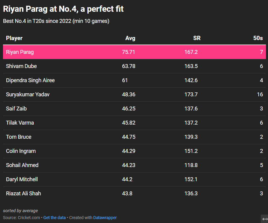 Also Read: Why a promotion to No.4 could help RR get the best out of Riyan Parag