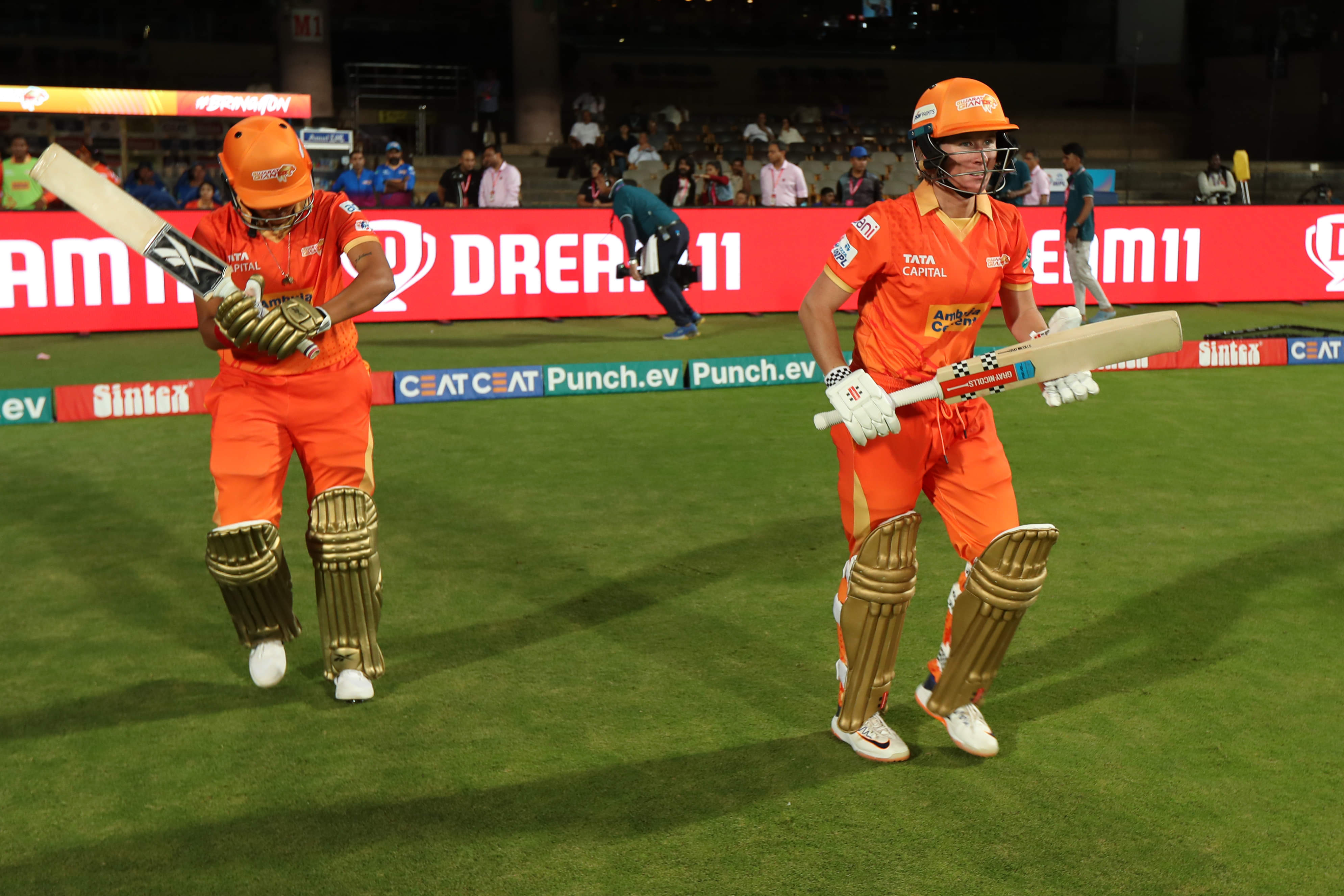 In the first-ever match between the two sides, Sophia Dunkley’s 28-ball 67 and Harleen Deol’s 45-ball 67 took the Gujarat Giants to a formidable 201. Ashleigh Gardner then picked up a three-for to help them win the game by a slender margin of 11 runs.