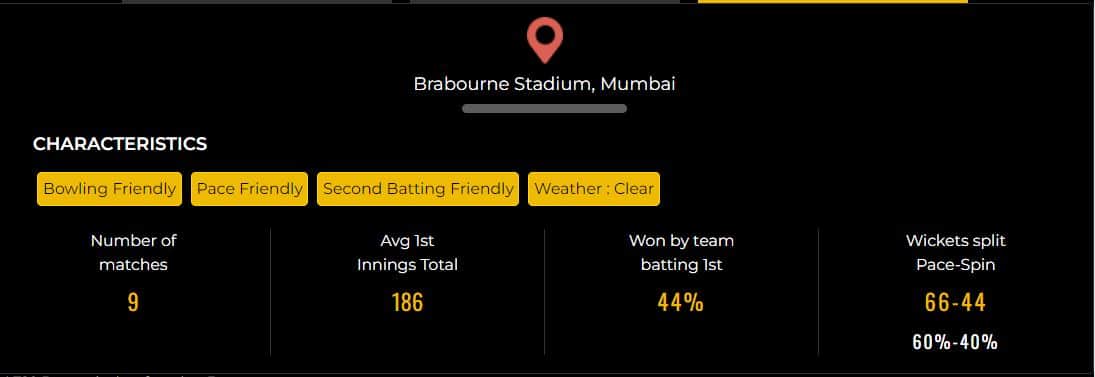The Brabourne Stadium has been a batting paradise for some years now. This season, the average first innings score at the venue has been 186/7 whereas the first innings winning score is a ludicrous 203/6. However, toss hasn’t played that big an impact with the batting first team winning four games as compared to the chasing side romping home five times. Spinners have had a telling impact with an average of 22 as compared to pacers’ average of 33.6.