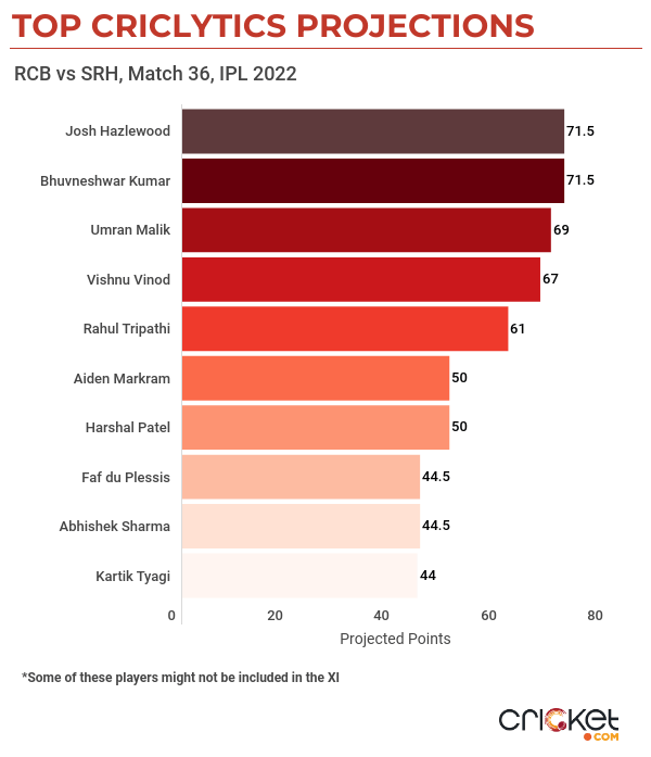 Our Criclytics Player Projection predicts Hazlewood to pick 2-3 wickets