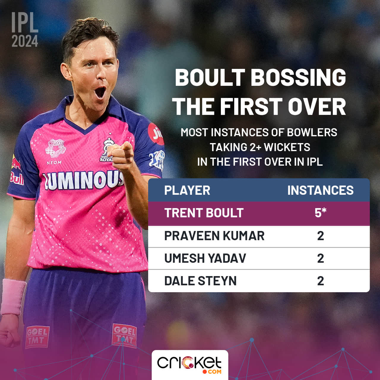 Trent Boult vindicated Sanju Samson’s decision to bowl first with two wickets in the first over and three overall in the powerplay. All three batters - Rohit Sharma, Naman Dhir and Dewald Brevis - were out for a golden duck. 3/22 are Boult’s best figures for Rajasthan Royals in IPL.
