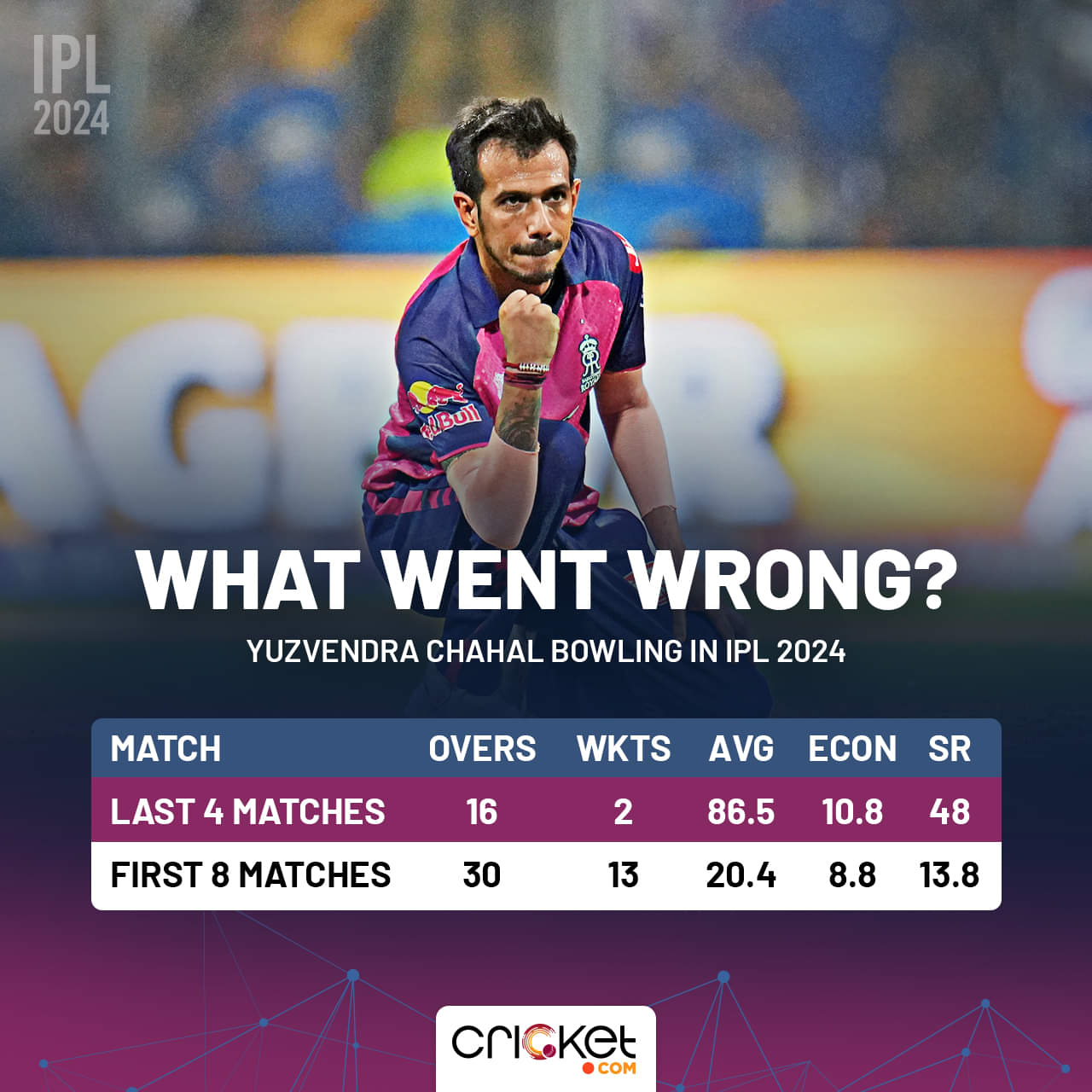 The fact that RR have lost three of the last four games isn’t a coincidence. Their ace spinner isn’t turning them towards success like he did for more than half of the tournament.