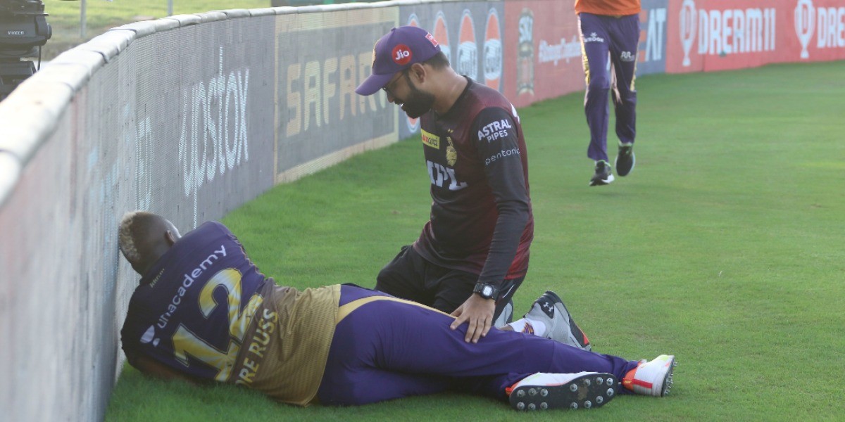 Russell walked off the field after saving a boundary during the 17th over of the CSK match which is a cause of concern for KKR as they prepare to face DC on Tuesday.