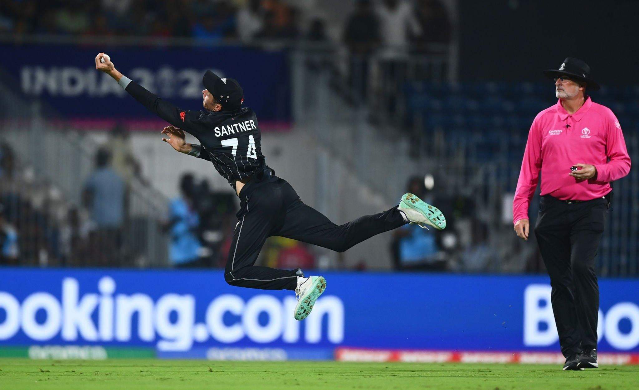 Santner was ever-existent in the field, with his bowling perhaps being second-best to his fielding. The all-rounder pulled off the catch of the tournament when he ran all the way around to the square leg umpire and leapt around in thin air to pluck the ball mid-air.