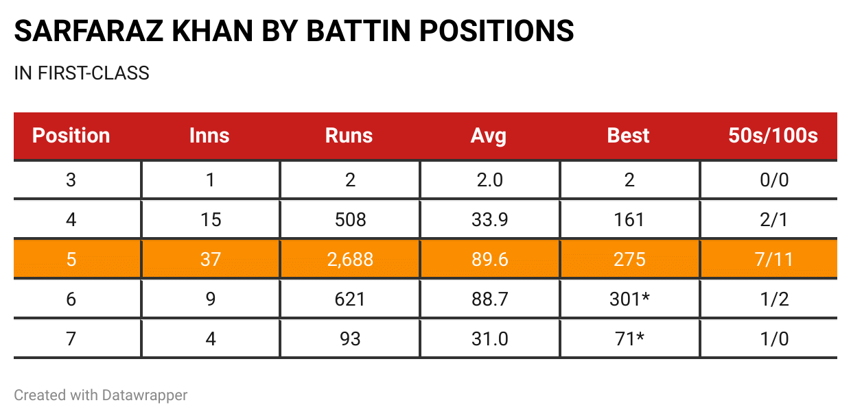 In any case, pushing either Jadeja or Axar takes a hit on the batting depth. This is why Sarfaraz's inclusion could solve the issue.