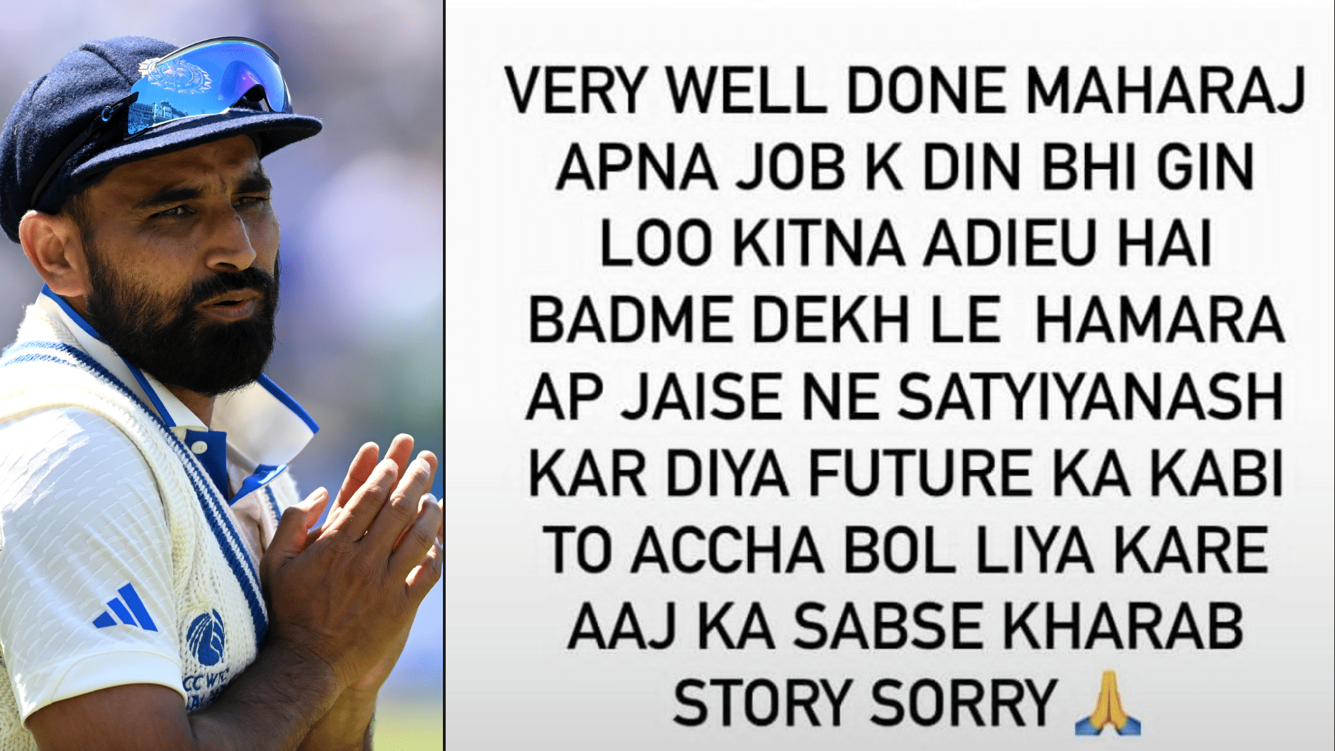 “Very well done, Maharaj. Apna job ke din bhi ginloo kitna adieu hai. Badme dekhle humara aap. Jaise ne satyinaash kar diya future ka. Kabhi toh accha bol liya kare. Aaj ka sabse kharab story sorry (You should count the days remaining in your job. You've ruined the future with such stories. Say something positive at least once. This is the worst story of the day),” wrote Shami on Instagram Stories, with a screenshot of one such article.