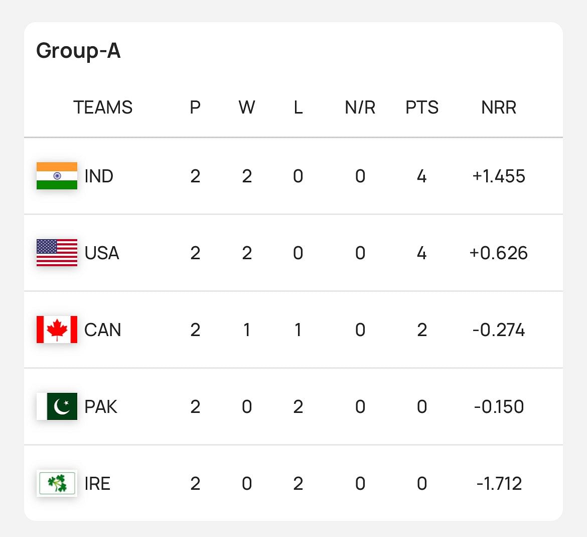In Group A, USA have pushed Pakistan’s qualification chances into the red zone. The Men in Green have lost both their games (against the USA and India), and are fourth in the five team group. Similar to England, they not only need to win their remaining games, but also hope that the other team (USA in this case) loses.