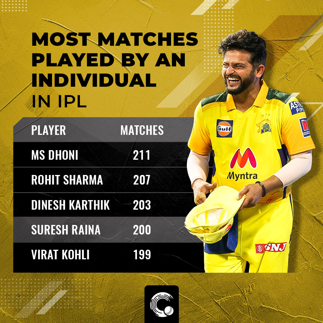 Raina became only the fourth player to play 200 IPL games. The left-hander was dismissed for just two runs, but is still the third-highest run-getter in the IPL.