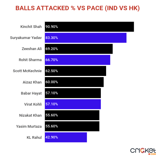It would have been easy to sympathize with him had he tried to up the ante and failed, but, on the night, Rahul attempted attacking a mere 42.9% of the 21 balls he faced versus the pacers; no other batter across both sides had an attack-percentage lower than 55% against the quicks.
