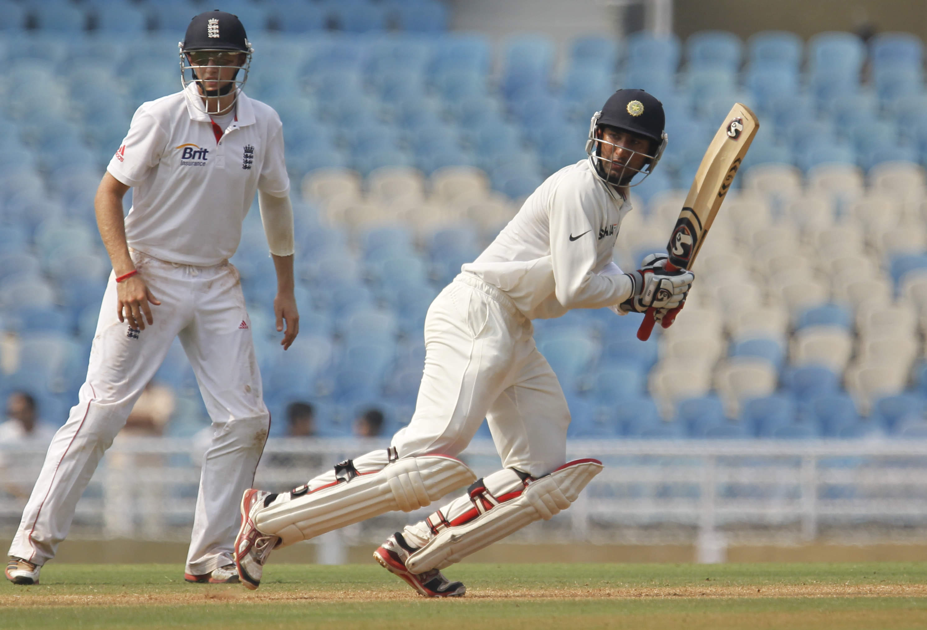 Coming into bat at number three with the score reading 134 runs for the loss of Gautam Gambhir, Pujara steadied the innings with Virender Sehwag. The duo accumulated the ones and the twos before the swashbuckling opener was dismissed for 117 runs giving England their second wicket of the innings.