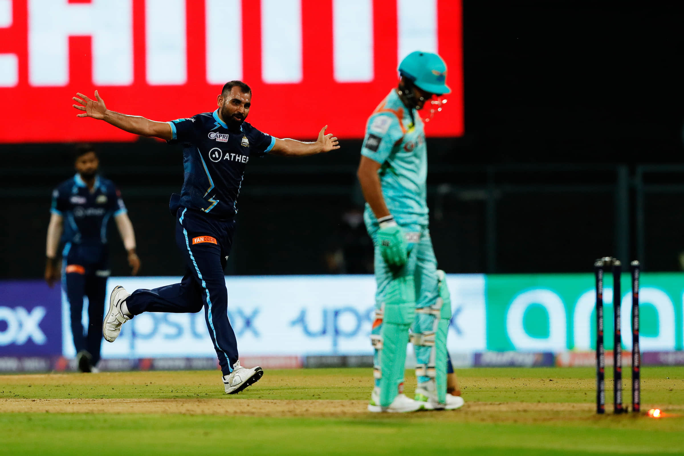 Starting with Rahul, he broke the back of Lucknow’s batting, making it stoop lower after every over of his new-ball spell. He finished with 3/10 after the powerplay, completing three overs from his quota of four. Lucknow recovered to post 158 runs on the board once Shami was rested.
