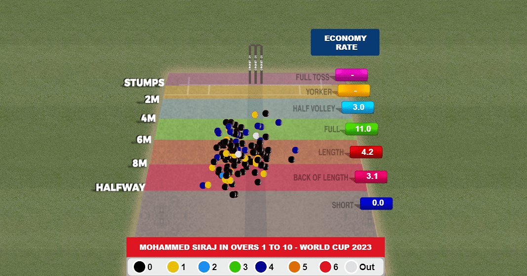 Siraj moved the ball both ways at 140 kph and above. Nearly 60% of his wickets were in the first 10 overs - pitching it up and moving the ball. However, his strength is turning out to be a non-performing asset in this World Cup. The ball has not swung much in one of the major trends of this tournament.