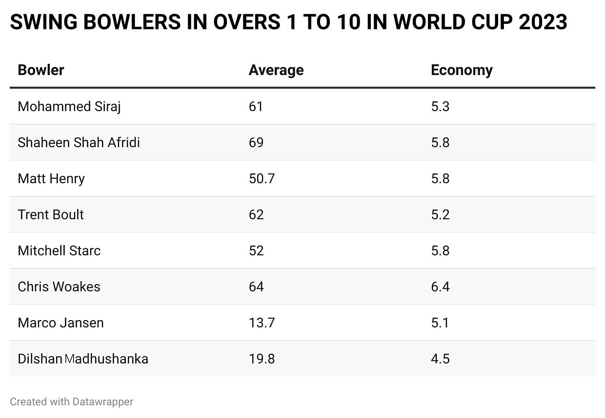 Even if it has, the movement has been minimal, often disappearing with the first boundary. Other prominent swing bowlers of the tournament - Shaheen Shah Afridi, Matt Henry, Mitchell Starc, Chris Woakes and Trent Boult - have also been ineffective in the first 10 overs.