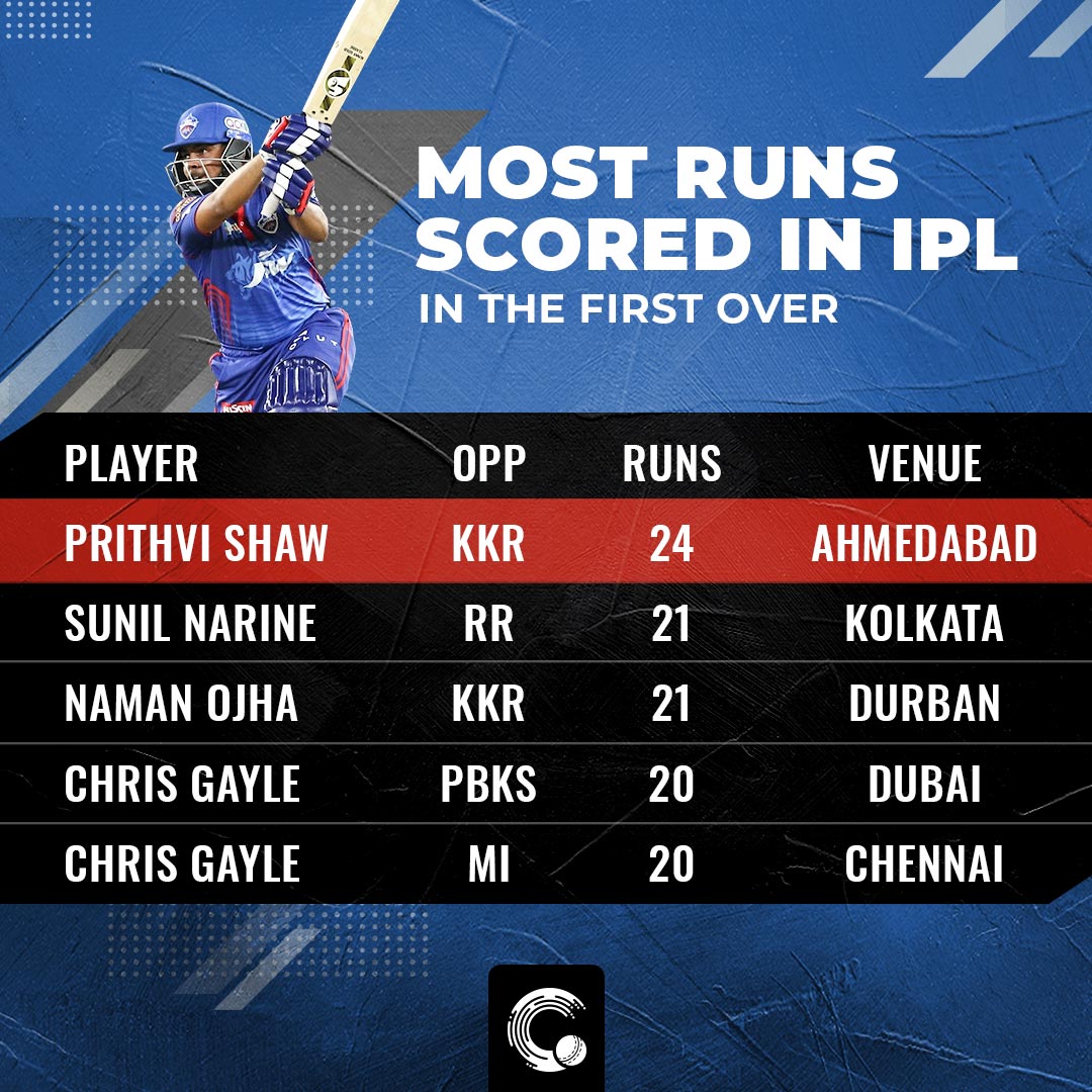 In his match against Sunrisers, Prithvi Shaw teed off with three boundaries in the first three balls of the innings. In tonight’s match, he went a step further and scored boundaries of all the deliveries. He became the second batsman in IPL after Ajinkya Rahane in 2012, to hit fours in all the deliveries of an over. Nevertheless, Prithvi is the first batsman in IPL to achieve this in the first over of the innings. Which is why, he has the most runs for a batsmen in the first over.