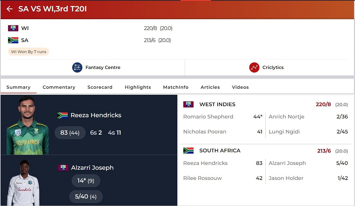 "We made a total and it was up to the bowlers to defend it. I thrive on the opportunity to make an impact.", said Joseph, who was named player of the match.
