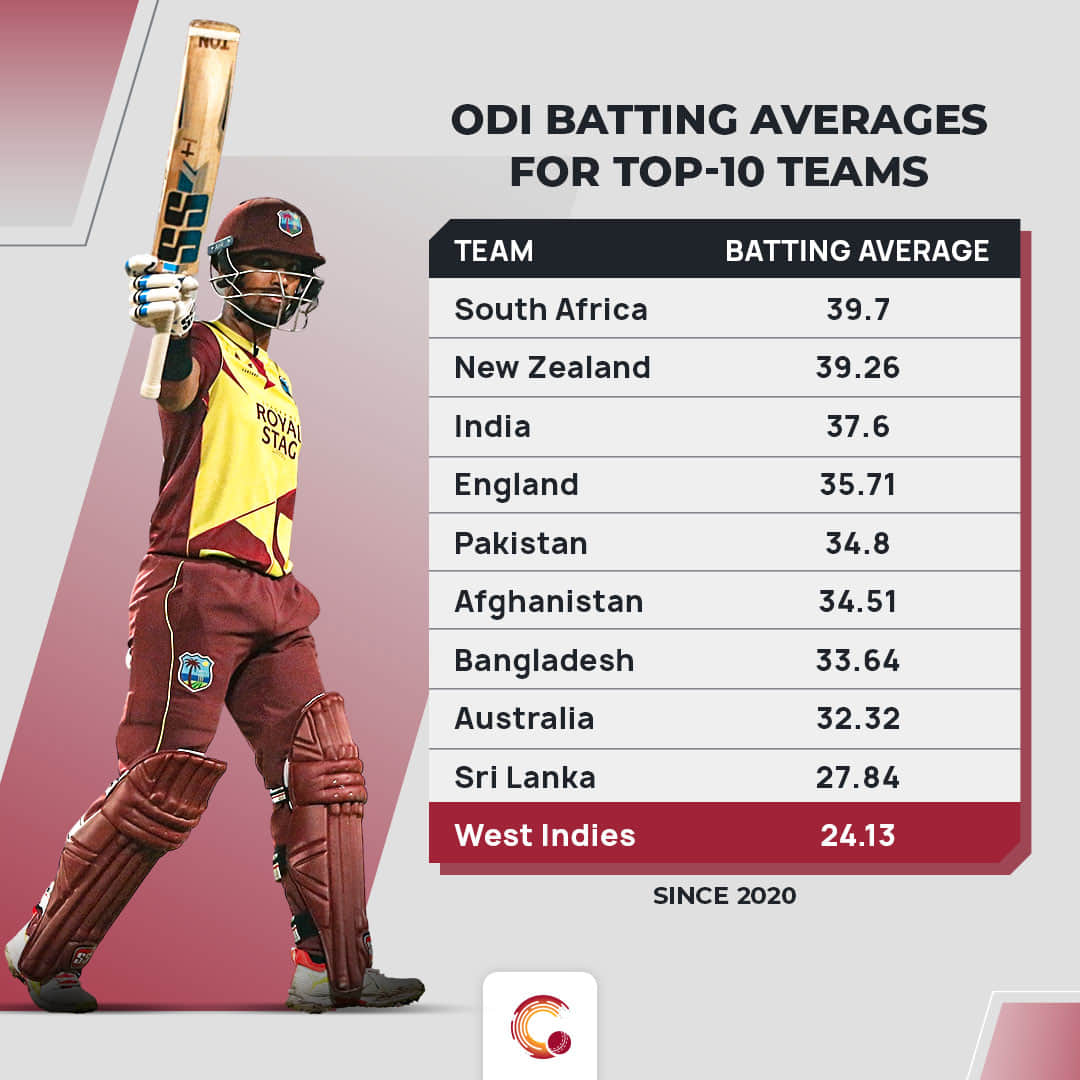 With the ball as well, in the same time-frame, the Windies have heavily relied on Alzarri Joseph, who has picked up 48 wickets, averaging 21.9. While Holder’s show in the ODI format has not been the most convincing of ones (13 wickets), his experience could be vital as Windies’ aim to qualify for the ODI World Cup without much hassle.