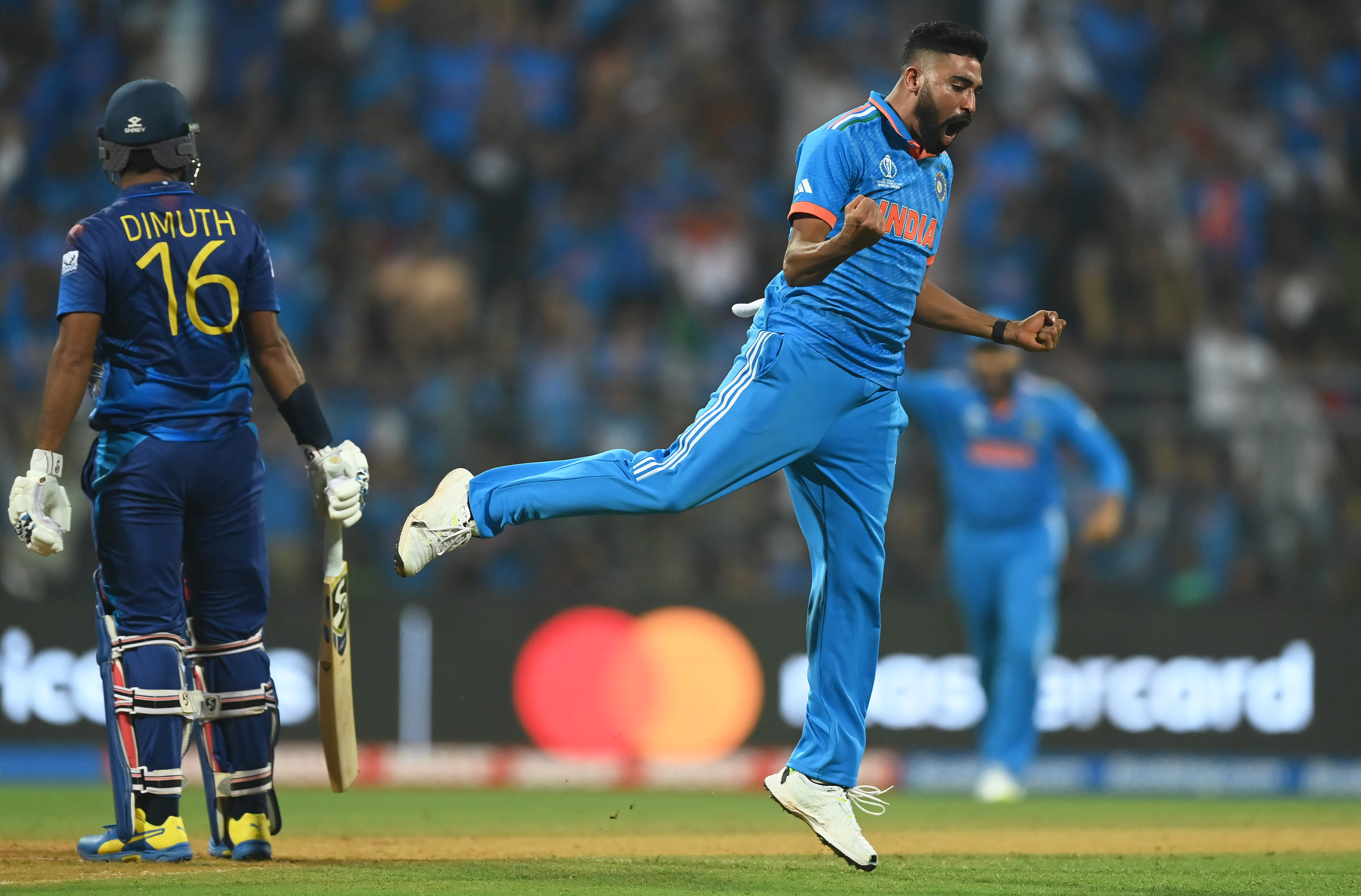 Not only did India have the second-largest win in terms of runs in World Cup history, but also became the first team to win two games by a margin of over 300 runs. It was on the back of a three-wicket haul from Mohammed Siraj and a five-wicket haul from Mohammed Shami.