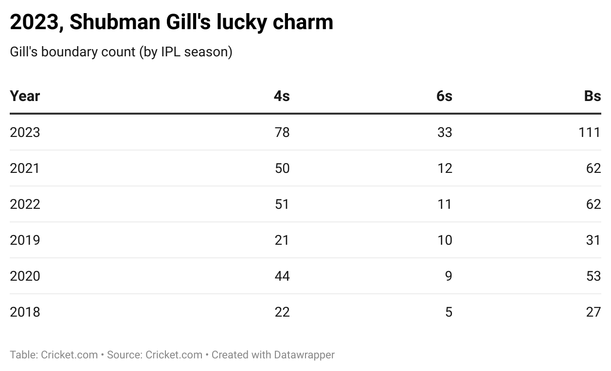 It was always on the cards but to expect something like this was beyond the realm. In IPL 2023 alone, Gill has smacked 33 sixes, and hit 78 fours, with a boundary every 4.9 deliveries. Now what makes this fact astonishing is that he’s only hit 80 sixes in his entire IPL career, including the 33.