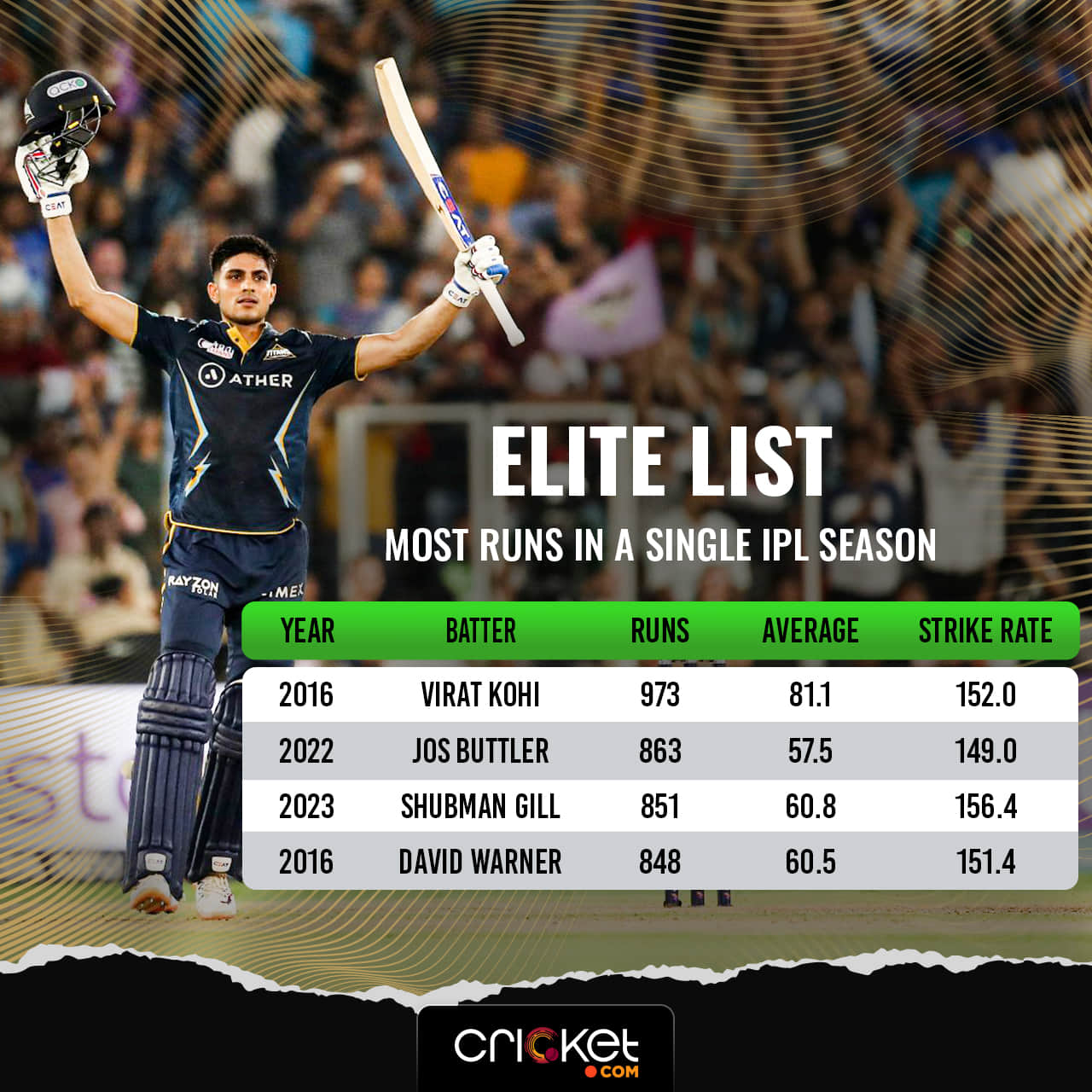 Let’s put Gill’s season in numbers. Until the start of this year, 2022 was his best-ever IPL year, with 483 runs averaging 34.5, and a strike-rate of 132.3. That was a substantial rise from the previous year when he scored 478 runs, with a strike-rate of 118.9. It was in the right direction but then a leap like this wasn’t ever expected.