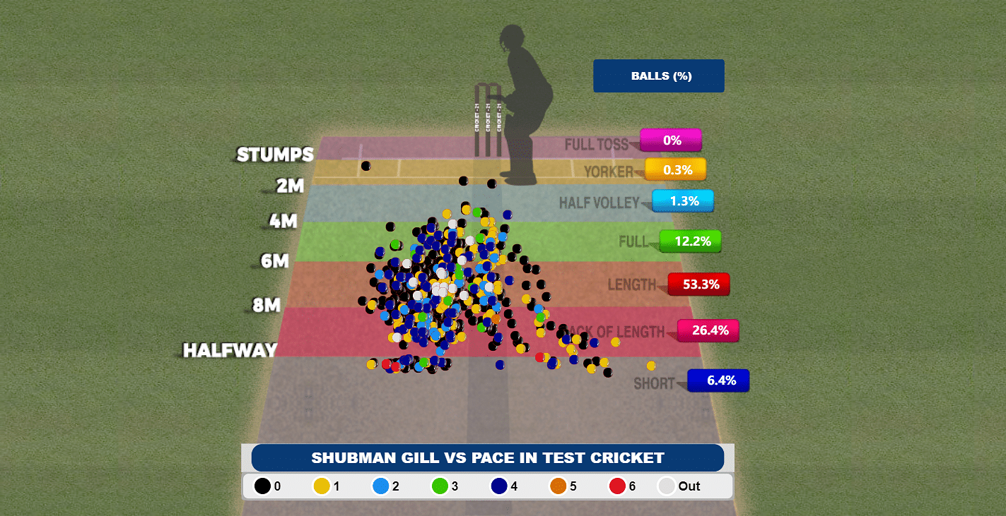 Across his career, there is an evident pattern: Gill is a brilliant player of pace bowling. In his career, the right-hander has scored 541 runs against pace, averaging 31.82 while still striking at 61.9. It isn’t just that, only when the ball is on a length has Gill struggled to gain momentum. Barring that, his strike-rate reads godly: 100, 104.7, 71, 133.9.