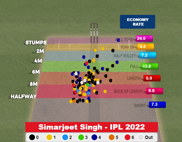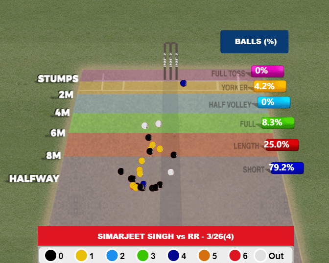 He similarly dismissed Sanju Samson by denying him the time to get the elevation on his down-the-ground hit. Just like that, Simarjeet had crippled RR’s top order which has set them the platform for big totals this year.