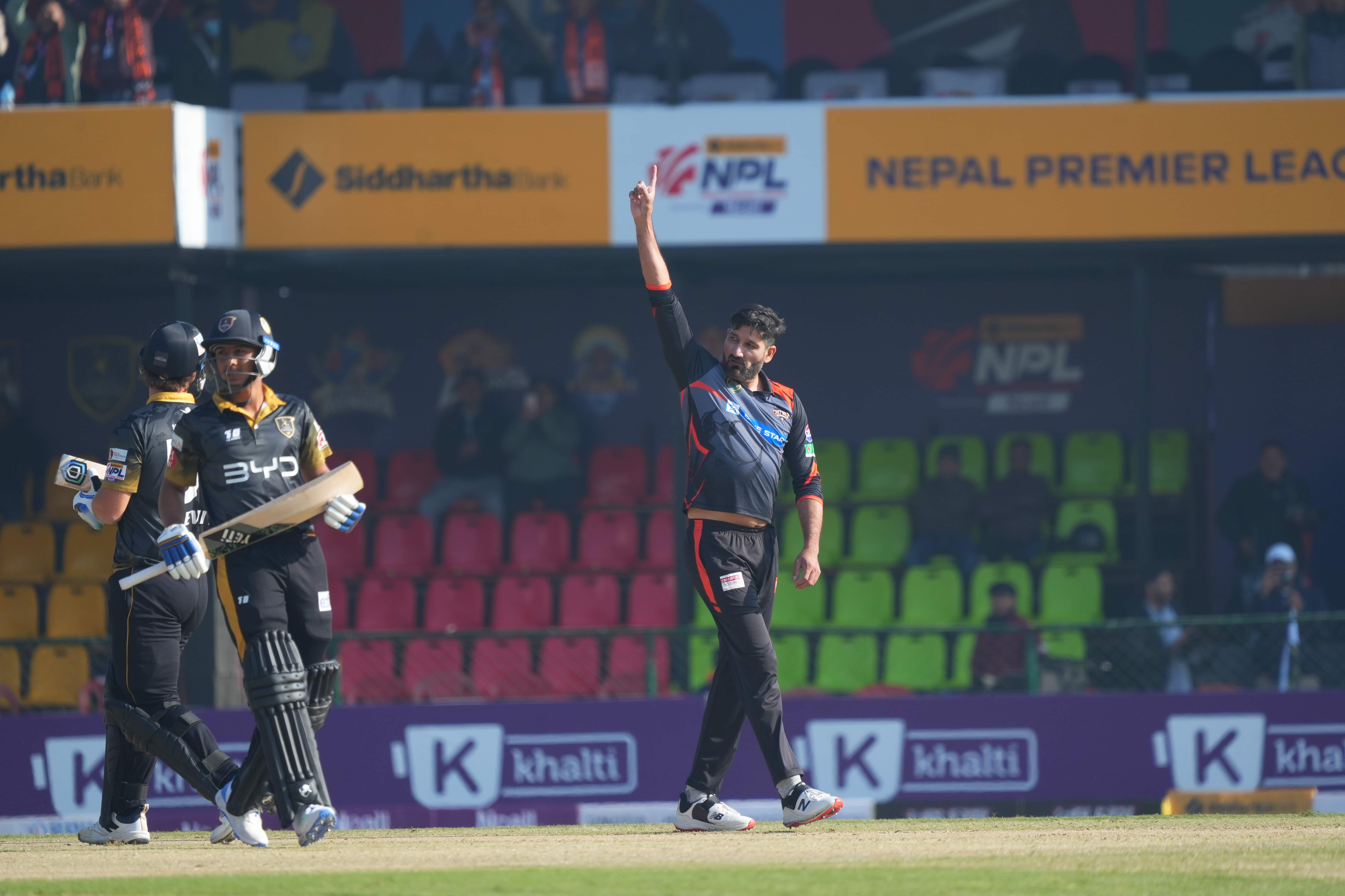 Veteran Pakistan bowler Sohail Tanvir picked up Chitwan Rhinos' first-ever wicket in the Nepal Premier League (NPL) 2024. He struck off the very first ball of his spell, with Kathmandu Gurkhas' Stephen Eskinazi hitting it straight to the man at cover, where Amar Routela made no mistake.