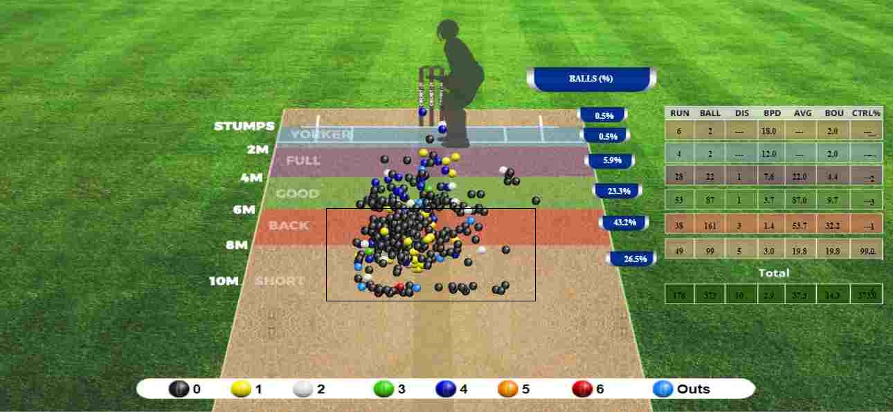 Anything that was fuller and pitched up, from 2-6m, Ashwin scored 30 runs off just 18 deliveries. And off the shorter deliveries, in the 32 deliveries, he only got 16 runs, showing tall technique against the challenging bowling attack. Time and again in his innings, the off-spinner was sterner in hitting the ball straight, avoiding the risk of playing a loose drive.