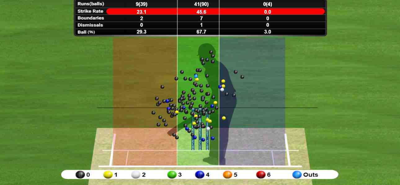 Like his innings in Centurion, the Indian stand-in skipper showed excellent control, not just over where his off-stump was but also over controlling loose drives. Out of the 39 deliveries outside off, Rahul scored nine runs, out of which two were boundaries. But once the ball was onto the stumps, which is 67% of the deliveries he faced, Rahul struck at 45.6.