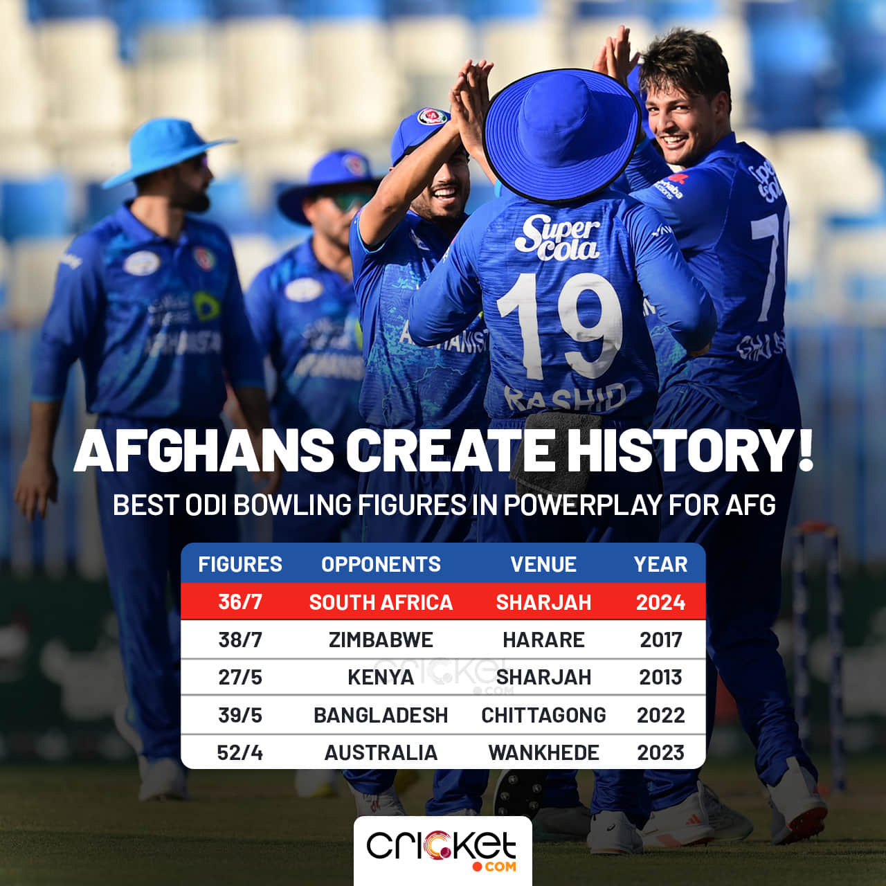 Prior to today's clash, South Africa had never lost a wicket in the powerplay against Afghanistan (57/0 and 35/0). But, on September 18 (Wednesday), they suffered their worst fate - 36/7 - the lowest powerplay score in their ODI history.