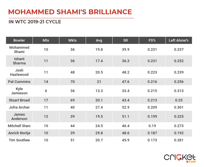 Mohammed Shami was fantastic as was Ishant Sharma. With a minimum of 20 wickets in the current WTC cycle, no pacer has induced more false shots than Shami. That Ishat sits on the second position on the table tells a story of its own. In the culmination of the two-year cycle, the duo put up a show of finality to put things into perspective as Shami’s control troubled both Kane Williamson and Ross Taylor. He kept landing on the full-length area to force the batsmen to a driveable position. So much so that Williamson took 105 minutes to hit his first boundary of the day.