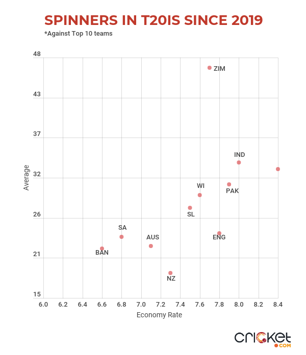 And much of this excellence with the ball is down to their finger spinners, who are simply mind-bogglingly consistent. Since 2019, against Top 10 sides, the Bangladesh spinners have averaged 21.8 while maintaining an ER of 6.6. Only New Zealand spinners, in this timeframe, have averaged better (18.4), while no team has been more economical.