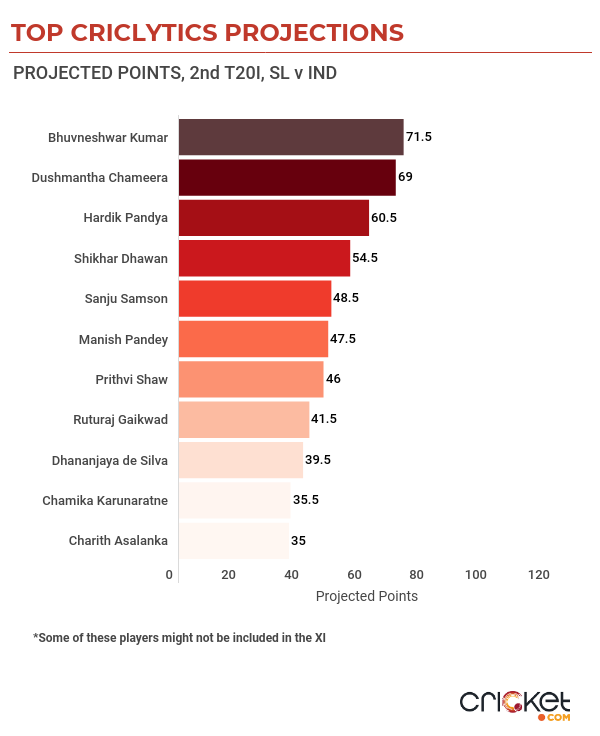 Here we present you some helpful tips on the basis of our Criclytics projected points system that may help you create a perfect Fantasy XI for the second T20I, to be played on Tuesday (26th July) at Colombo’s R. Premadasa Stadium.