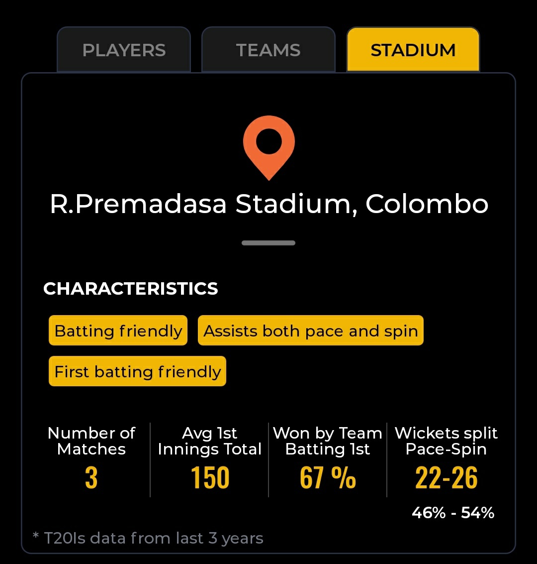 The venue also hosted the first T20I, which was its first since October 2018. Premadasa has generally been a batting friendly venue but the series suggested enough assistance for the spinners and the trend continued in the first T20I as well. There are some quality spinners on offer and it would be ideal to have at least two of them in your XI.