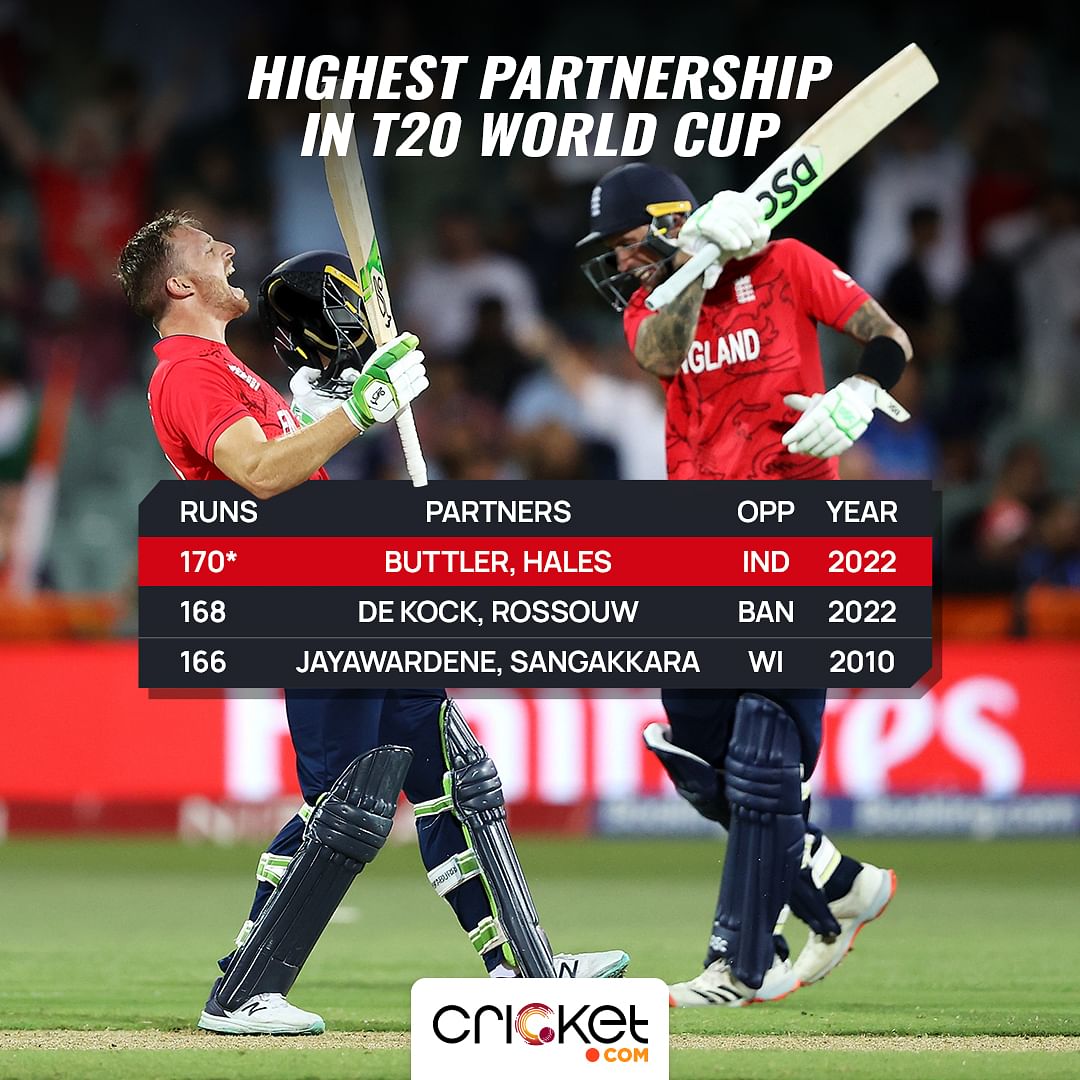 Against India, this is only the third 150+ partnership and Buttler and Hales’ 170 is the second best. South African duo Quinton De Kock and David Miller in Guwahati this year had posted an unbeaten 174 for the fourth wicket, the highest.