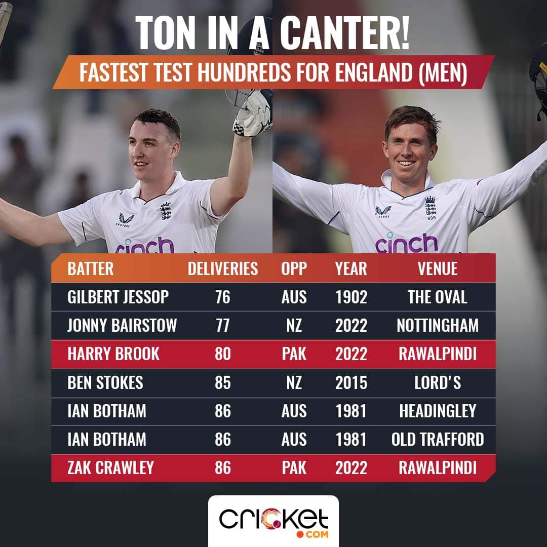 Brook reached his maiden Test hundred in just 80 balls, which is the third fastest Test hundred by an Englishman three balls more than Jonny Bairstow's counter-attacking hundred against New Zealand few months ago.