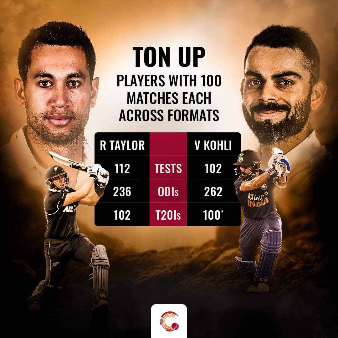 Kohli now has played 100+ matches in all three formats, 102 Tests, 262 ODIs and 100 T20Is. Across all formats, he has 23761 runs and averages 53.5. By virtue of playing 100 matches across all formats, he became the second player in international cricket after Ross Taylor to feature in 100+ matches in all three formats.