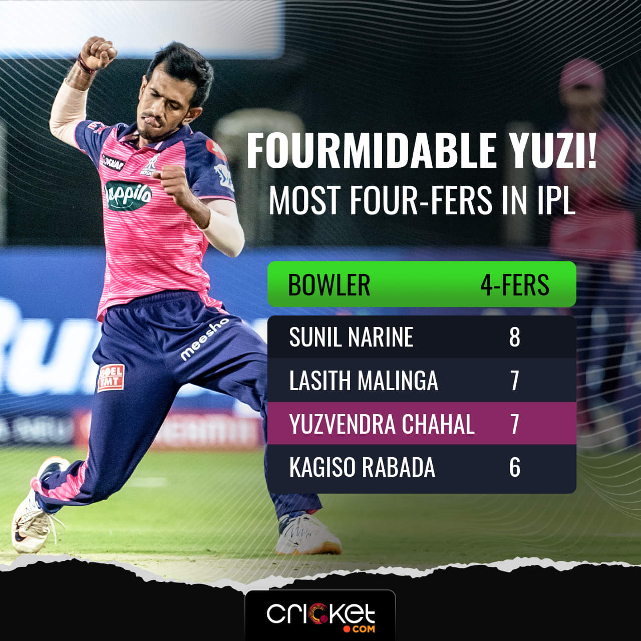 In the IPL, Chahal is the fifth bowler to bag consecutive four-fors. Shadab Jakati in 2009, Munaf Patel in 2012, Andrew Tye in 2018, and Kagiso Rabada in 2022 are the other four.