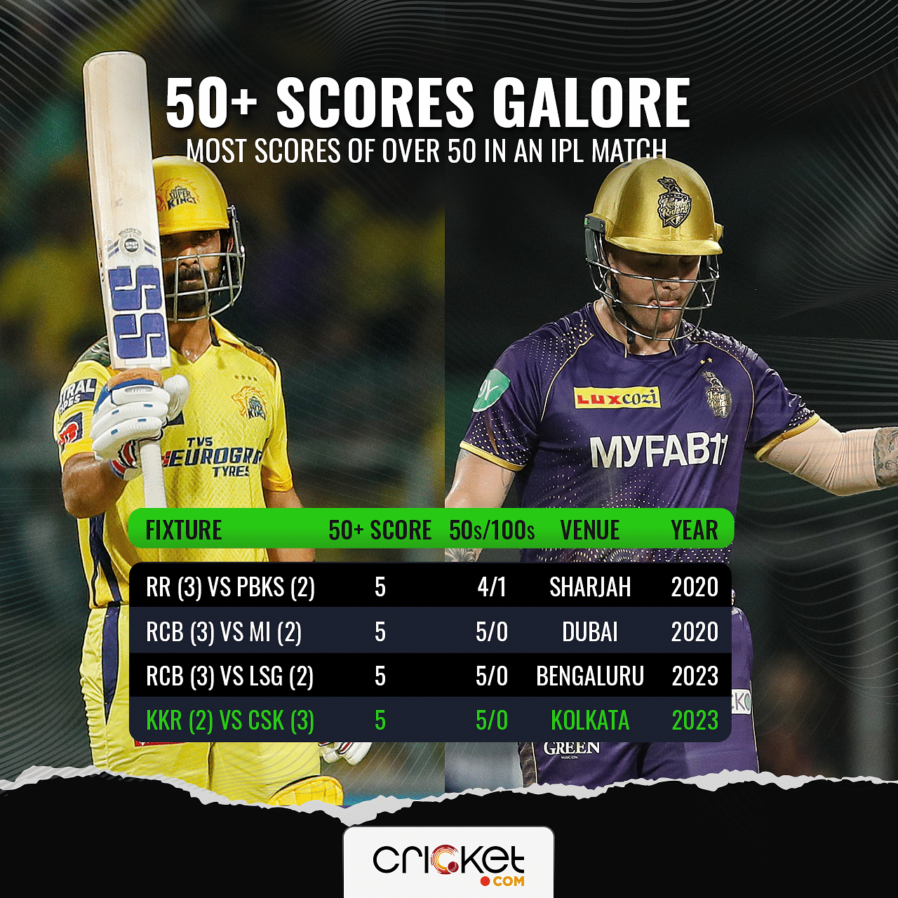 Three batters from CSK and two from KKR scored half-centuries in this match. Out of those five, three registered super-quick ones: