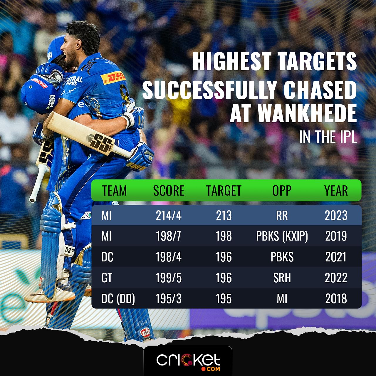 In the IPL, this was Mumbai's second-highest chase. Their highest chase, 219, came against Chennai in 2021 in Delhi.