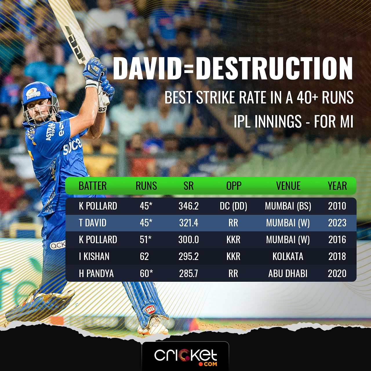 Mumbai were in trouble when Tim David came into bat. But the Singapore-born batter, in the end, teed off to take Mumbai over the line in the milestone match.